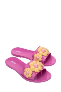 Babe by name Babe by nature. The Melissa Babe Soft Bow is a classic slip on slide with concealed toe post under the strap for extra support and grip. Adorned with an amazing 3D bow on the toe, these really are eye catching.